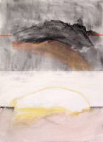 In die Fläche durch die Tiefe der Schwärze der Kohle - der räumliche Aspekt in der zweiten Dimension. Die Kohle zeichnet auf, ein sehr trockenes Material, dessen Entstehung Wandel und Zeit impliziert. Die Kohle schafft Raum und die Farbe bestimmt die Ebene.